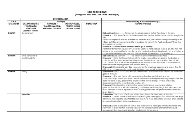 Novel Sing To The Dawn Questions Answers Events Evidences Reasons Tips To Get An A Pdf